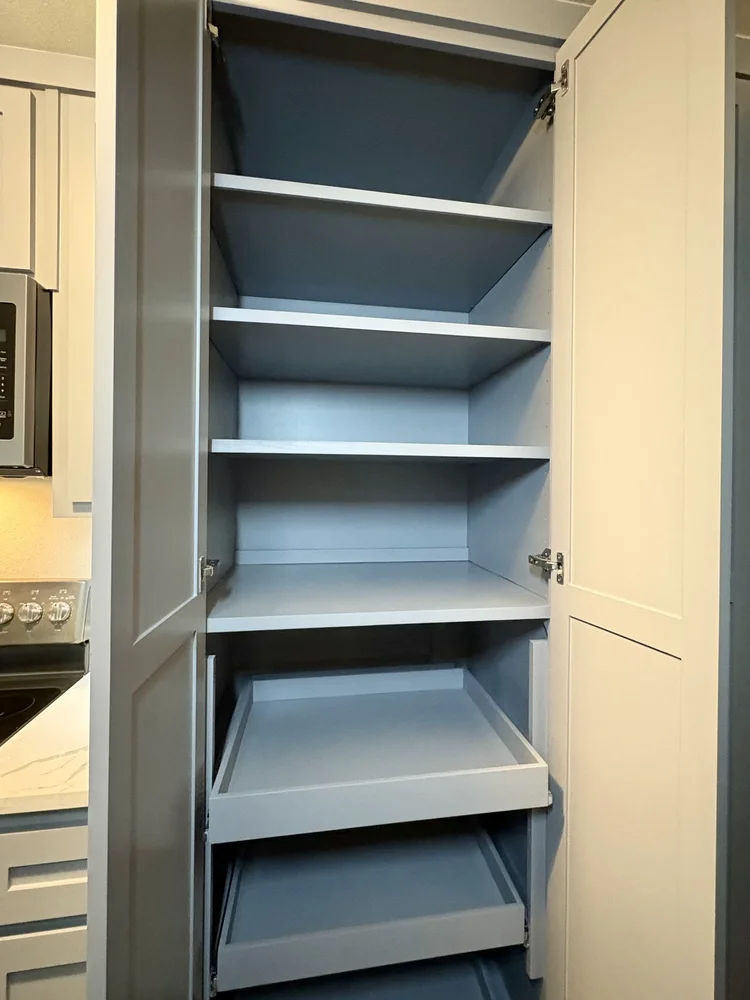 To make the space truly work for the homeowners, the cabinets were customized with tailored storage solutions designed around how they use their kitchen. Thoughtful details and quality craftsmanship came together to create a kitchen that is not only updated and inviting, but also perfectly suited to the owners’ needs.